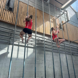 Wartezeit hatten wir mehr als genug, denn es gab insgesamt 7 Disziplinen über den ganzen Tag verteilt. Dazu gehörten Klettern, 30m Sprint, Dreihupf, Hochsprung, Kugelstossen, Springseilen und die Pendelstafette. Disziplinen wie das Klettern, Seilspringen oder auch der Dreihupf, waren für uns neue Disziplinen, die wir an anderen Wettkämpfen noch fast nie so hatten. Trotzdem haben wir diese gut gemeistert, auch wenn wir nicht alle davon so oft geübt haben. Bei den Männern mussten immer 6 Personen eine Disziplin machen und bei den Frauen 4. Leider gab es durch die umbauten bei der Turnhalle sehr spezielle regeln, wer alles in die Halle durfte und wie viele, weshalb man die einten Disziplinen von den anderen gar nicht schauen gehen konnte.